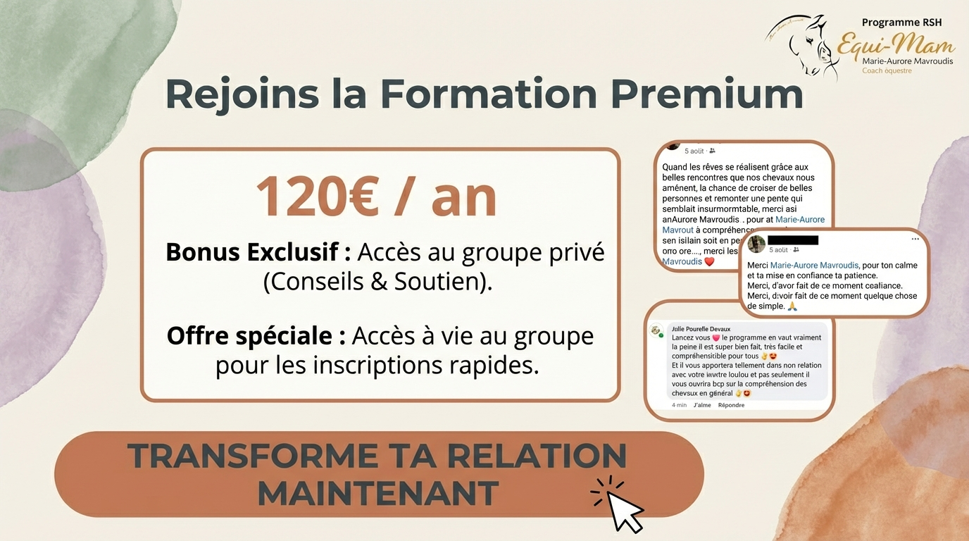 plus sereine et plus juste avec ton cheval.
